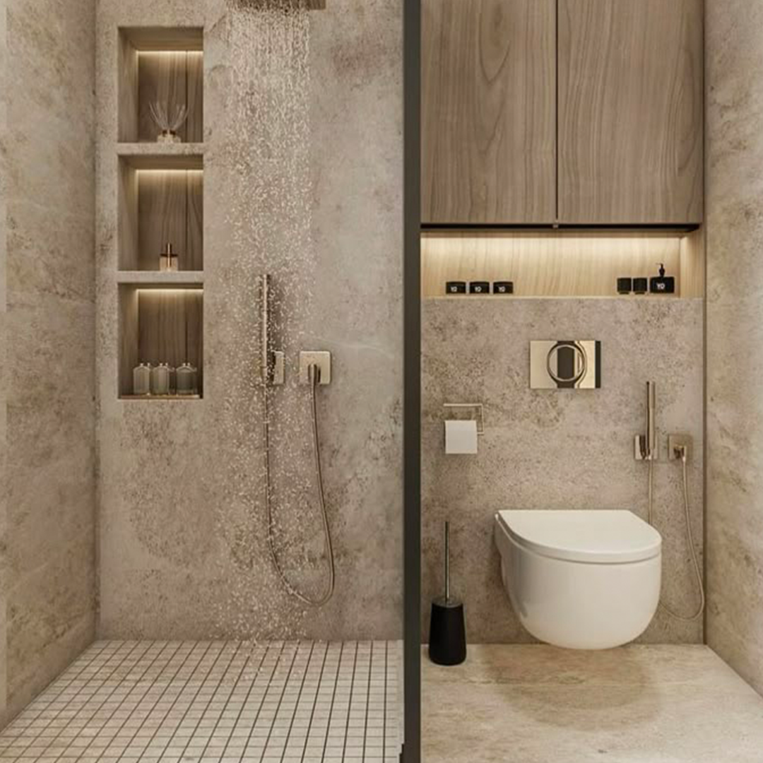 Projelerimizde akıllı duş sistemleri, sensörlü armatürler, yerden ısıtma gibi modern teknolojilerle donatılmış çözümler sunarak banyo kullanımını daha konforlu hale getiriyoruz. Ambiyans aydınlatmaları, entegre aynalar, gizli depolama çözümleri gibi yenilikçi detaylar ise günlük yaşamı daha keyifli kılmak için banyo tasarımlarımıza entegre ediliyor.